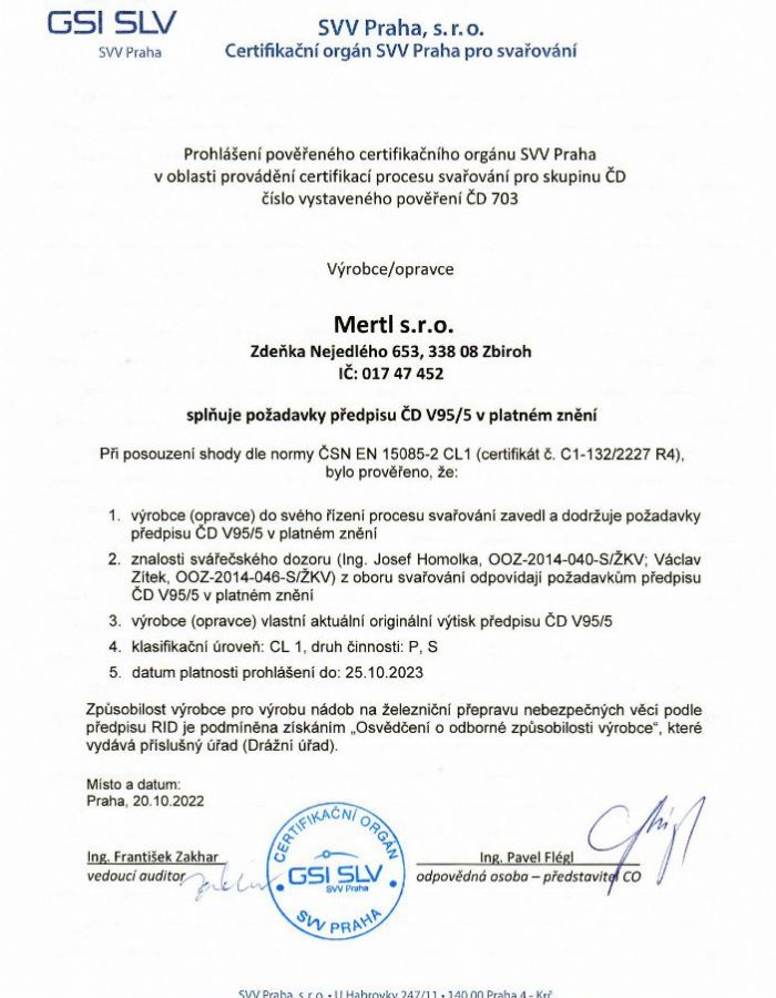 ČD OSVĚDČENÍ O ZPŮSOBILOSTI DODAVATELE